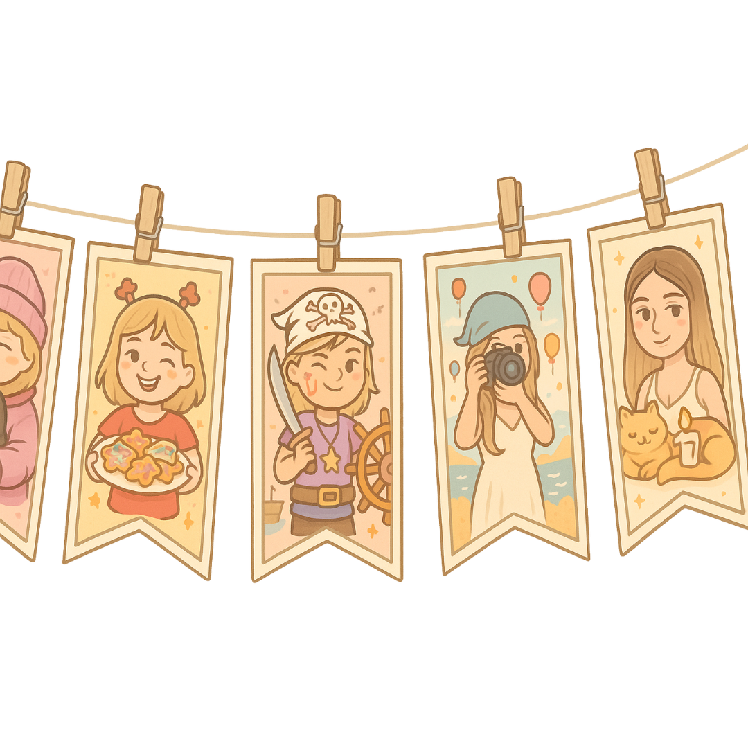 This isn’t just party decor, it’s a handcrafted banner made of 5 illustrated cards that tell their story. From strengths and quirks to the joy they bring others, each card celebrates what makes them one of a kind.
