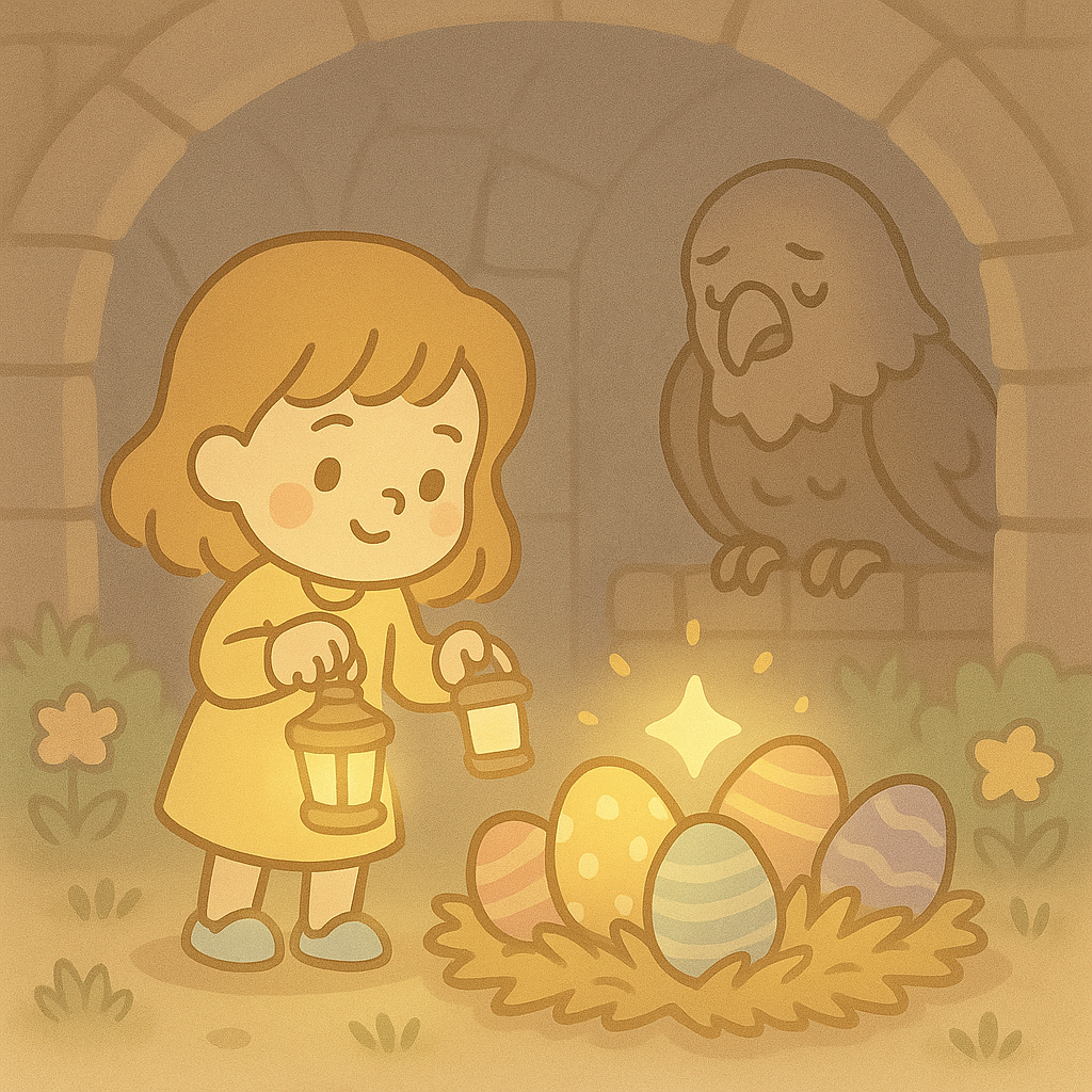 She lit the lantern the hedgehog gave her, and the eggs sparkled in its warm light!