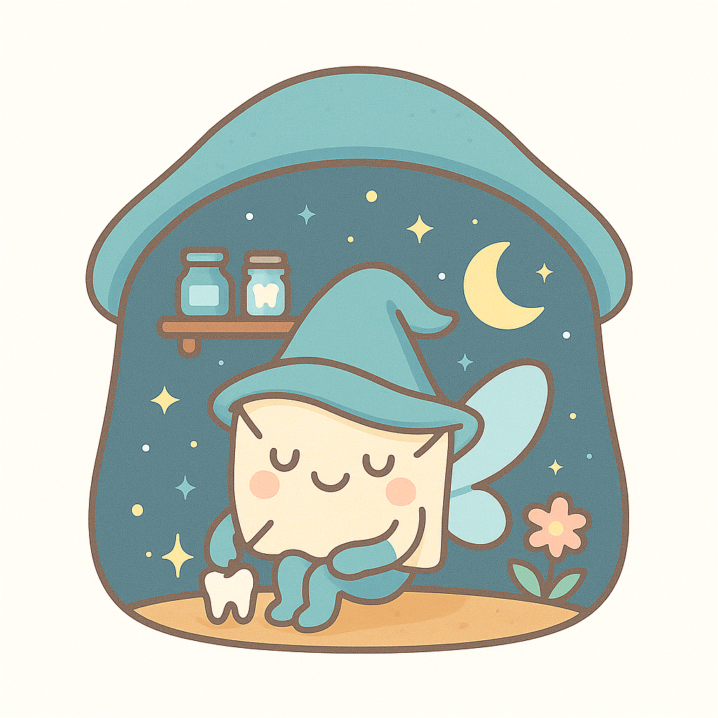 Her castle floats between the stars if you squint hard, you might see it through a telescope. And… (lower your voice) she has helpers: winged mice scouts. They check which teeth are ready for adventure. Maybe tonight, they’ll visit us?"